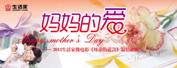 生活家首部反映母愛題材的微電影《母親的謊言》于2013年母親節期間溫情獻映。本部微電影以普通百姓的角度出發,著眼于身邊尋常小事,從中挖掘出愛與家的深刻含義。