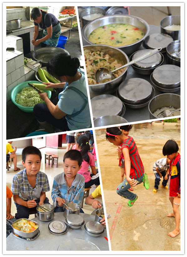 “饅頭的群山,翠綠的老樹,破漏的球板,換錢的蜈蚣,手搖的鈴聲,歡樂的游戲,忙碌的教工,大盆的菜肴,吃飯的少年”,志愿者胖洪如此表達(dá)對(duì)“給孩子加個(gè)菜”的印象。此圖文發(fā)到微博微信上馬上引發(fā)了70、80后們的集體回憶,他們?cè)诟锌疅o憂的少年時(shí)光同時(shí),更是關(guān)注貧困山區(qū)的孩子們健康快樂成長(zhǎng)。