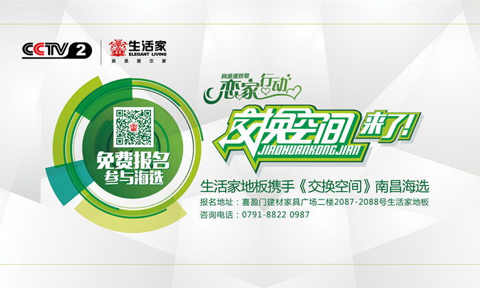 《交換空間》欄目是央視財(cái)經(jīng)頻道一檔著名的家裝服務(wù)類節(jié)目,這次生活家地板通過與《交換空間》的合作將海選帶到南昌,生活家地板作為此次海選的獨(dú)家合作單位將全程參與其中。自從5月12日南昌城市海選啟動后,目前已引發(fā)南昌各地區(qū)家庭廣泛關(guān)注,報(bào)名人數(shù)持續(xù)飆升!